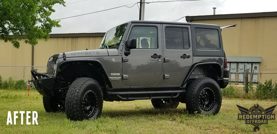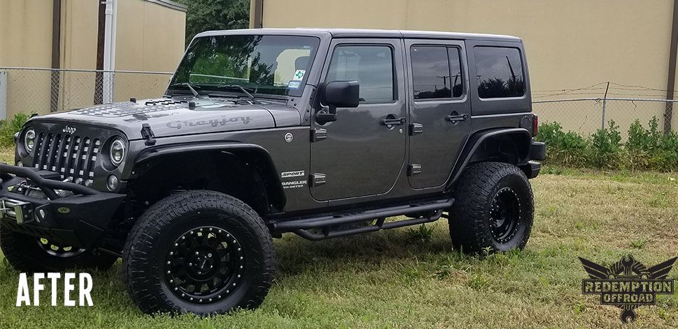 Greyjoy came in for some awesome upgrades! Smittybilt front & rear bumpers, sliders & poison spyder fenders.